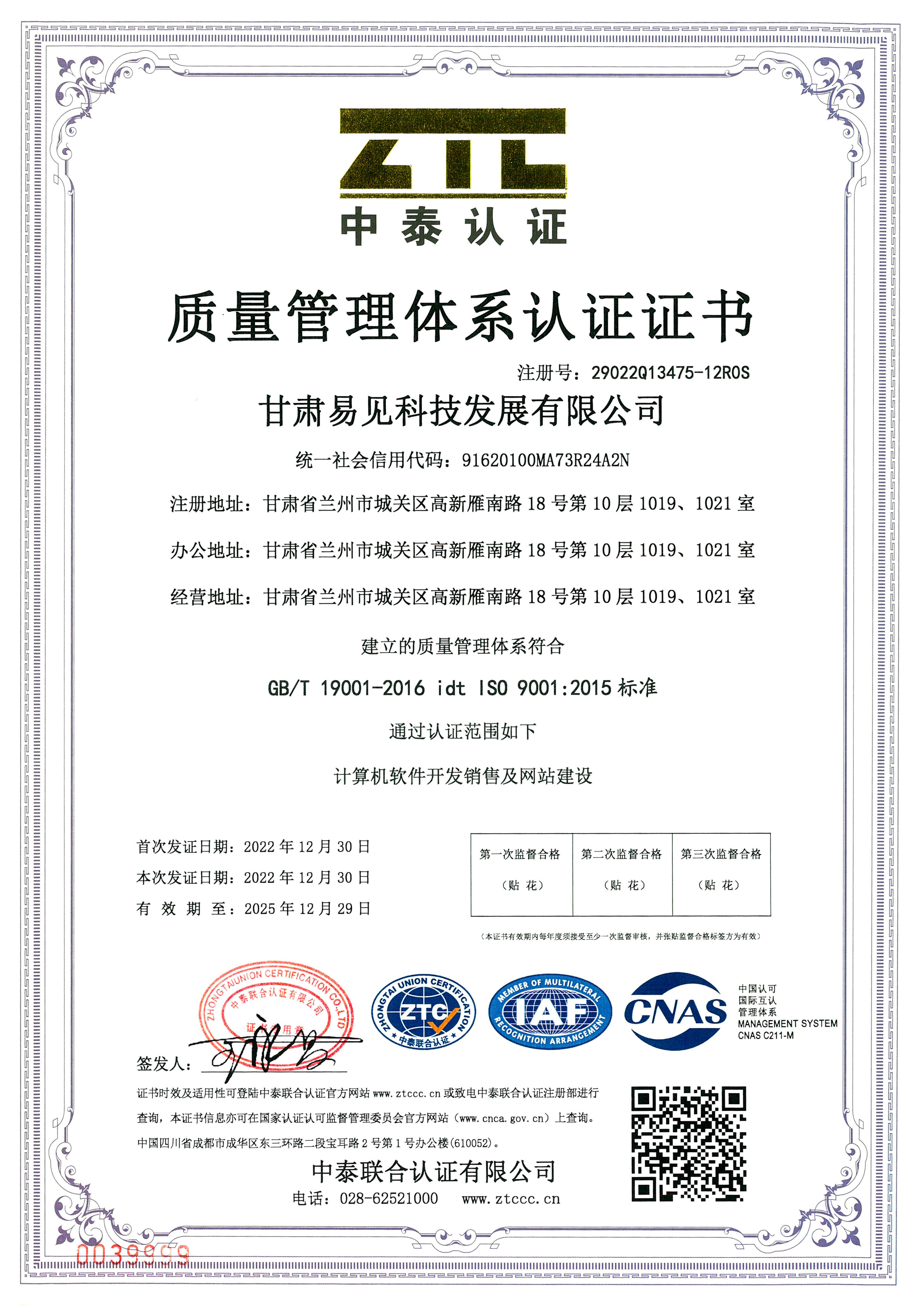 2022Äê12ÔÂ30ÈÕÎÒ¹«Ë¾ÖÊÁ¿ÖÎÀíÌåϵ¡¢Çé¿öÖÎÀíÌåϵ¡¢Ö°Òµ½¡¿µÄþ¾²ÖÎÀíÌåϵ£¬¾ÉóºËµÖ´ïÈÏÖ¤ÒªÇó£¬È¡µÃÈýÌåϵÈÏÖ¤Ö¤Êé¡£